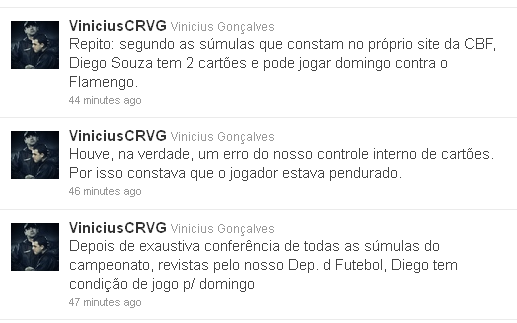 Fonte: GloboEsporte.com (texto), Twitter do assessor de imprensa do Vasco (imagem)