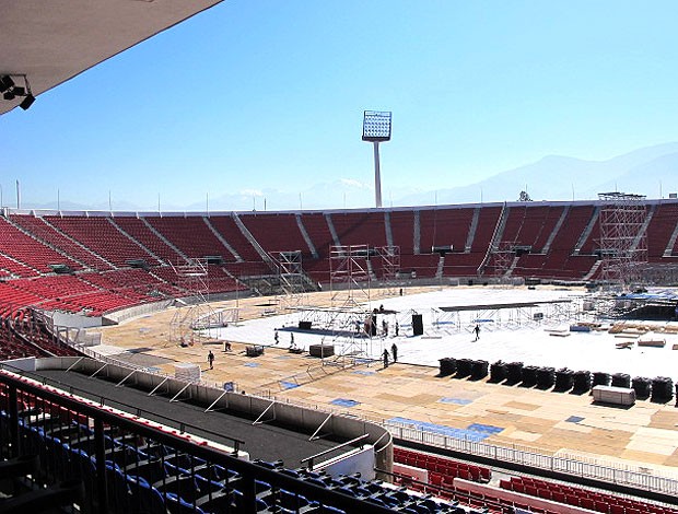 Em sua volta ao Chile, o Vasco não reencontrou o palco onde iniciou sua conquista da América. O Estádio Nacional não pôde abrigar a partida contra o Universidad de Chile porque será sede de um evento beneficente que acontecerá sexta-feira e sábado. Dessa forma, o duelo desta quarta será no Estádio Santa Laura, que pertence ao Unión Española. Assim, o que se viu nesta quarta pela manhã foi um campo totalmente tomado por estruturas metálicas e funcionários apressando a montagem do palco.