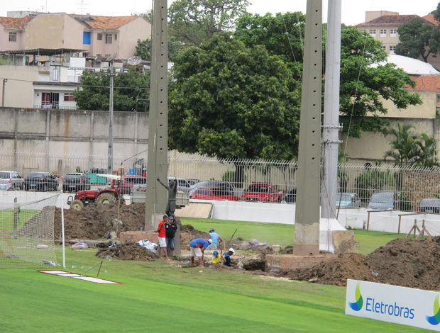 As obras começaram há cerca de uma semana, mas nesta sexta, enquanto o Vasco treinava no gramado, operários se concentravam atrás do gol onde está a estátua de Romário. Tratores fizeram as escavações para a retirada das fundações do atual placar, que será substiuído por um de última geração.