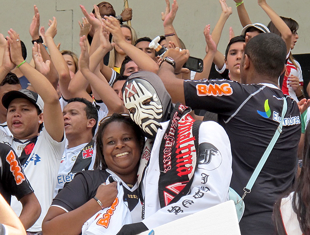 Junto com os torcedores do Vasco, há várias pessoas com a camisa do Palmeiras, que precisa vencer o líder Corinthians neste domingo. O nome do clube paulista chegou a ser gritado algumas vezes pelos torcedores. As torcidas dos dois clubes são amigas.