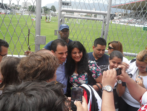 Enquanto esperavam os jogadores acabarem a atividade desta manhã, em São Januário – a última da temporada –, dezenas de torcedores vascaínos resolveram tietar o diretor-executivo do clube, Rodrigo Caetano, um dos principais responsáveis pelo processo de reconstrução desde 2009. Adorado pelos cruz-maltinos país afora, o cartola também distribuiu autógrafos e tirou fotos.
