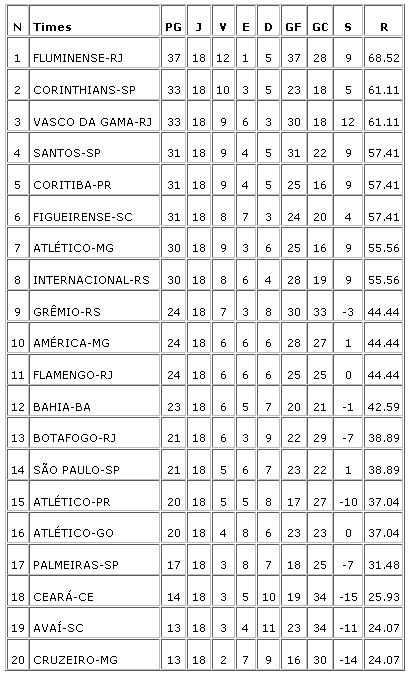 CLASSIFICAÇÃO DO TURNO DO CAMPEONATO BRASILEIRO 2011