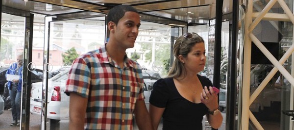 Volante Rômulo, do Vasco, ao lado de sua mulher, chega ao Hotel Pullman Ibirapuera antes de ir para a festa do Craque Brasileirão 2011