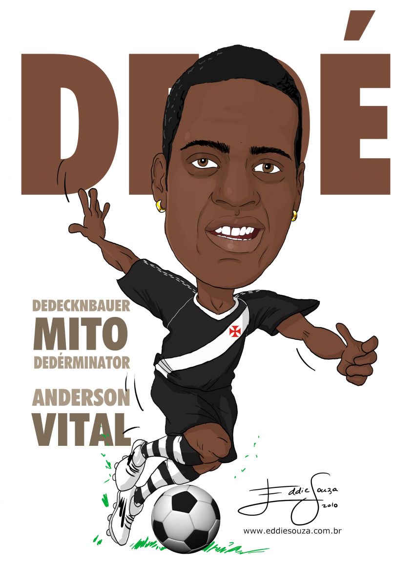 Após entregar as caricaturas dos ídolos Juninho e Felipe, o designer Eddie Souza cumpriu o prometido e fez a homenagem para o zagueiro Dedé. O Mito recebeu da mão do ilustrador vascaíno a sua caricatura.