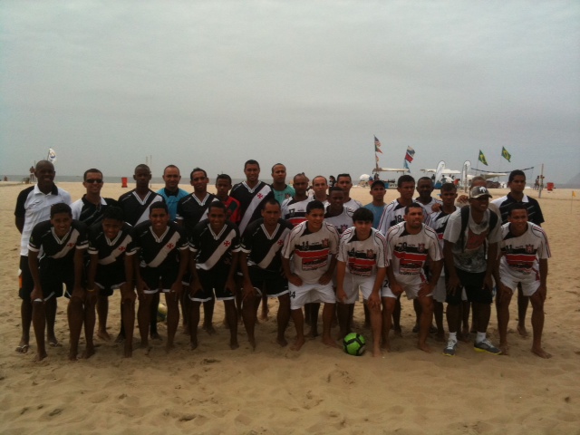 Parabéns aos jogadores e Comissão Técnica do Vasco por esta importante vitória, que é o espelho de que o trabalho está no caminho certo. Vamos continuar o trabalho em busca dos títulos na temporada 2012! O amistoso contou ainda com a ilustre presença do grande amigo Secretário de Esportes de Manaus, FABRÍCIO LIMA, um grande parceiro e incentivador do beach soccer, além de outros amigos que trabalham com Fabrício na Secretaria de Esportes, que estão aqui no Rio de Janeiro entre outras coisas para fecharmos os detalhes do evento que realizaremos em 2012, buscando um sucesso ainda maior do que I Copa Brasil de Clubes realizada em maio deste ano. Ainda em 2011, realizaremos um quadrangular na praia de Copacabana, com homenagens especiais aos grandes nomes do esporte brasileiro, para fechar bem o ano e anunciar oficialmente a chapa que concorrerá às eleições da Federação de Beach Soccer do Estado do Rio de Janeiro – FEBSERJ, sobre o qual informarei os detalhes em breve. A Chapa é formada por integrantes do Vasco e do Botafogo, equipes que se destacaram em 2011, e tem como principal objetivo o retorno do beach soccer carioca à elite brasileira, contando com o apoio de nomes de peso do esporte como Zico, Junior, Edinho e muitos outros.