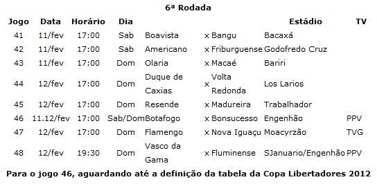O clássico Vasco x Fluminense, pelo Grupo B, será às 19h30m do dia 12 de fevereiro (domingo), pela sexta rodada. De acordo com a federação, o jogo poderá ser realizado em São Januário, caso o Botafogo atue no mesmo domingo - se jogar no sábado, o clássico seria no Engenhão. A decisão também depende da tabela da Libertadores, segundo a Ferj.