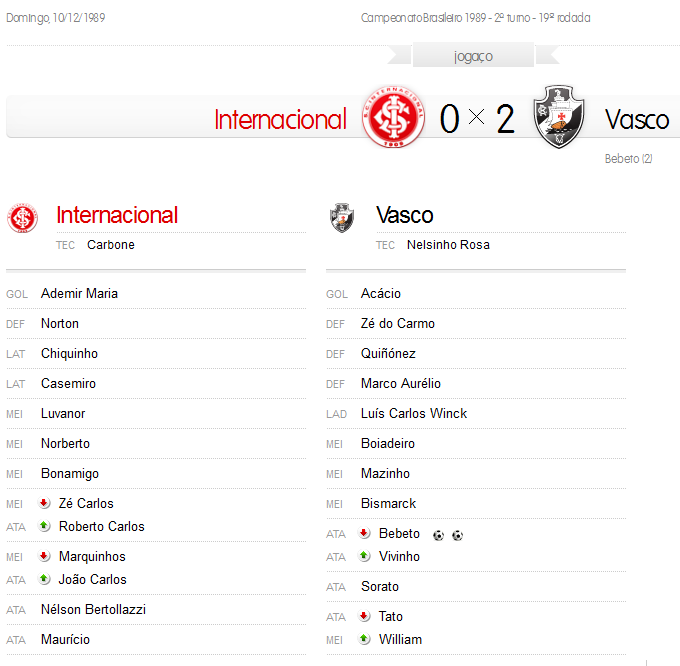 14/10 Há 21 anos, Vasco vencia o Internacional por 3 a 0 na volta de Bebeto