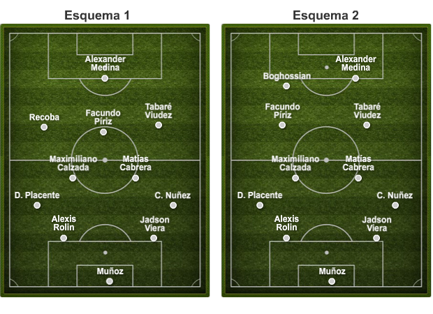 Já sem Recoba, na primeira etapa, o esquema é diferente. Facundo Píriz e Tabaré Viudez ficam responsáveis pela criação das jogadas no meio de campo e por criar boas situações para os atacantes. Medina cai mais pela direita e ganha um companheiro no ataque, que se movimenta mais pela esquerda. Muitos jogadores já passaram pela posição, mas Boghossian se destaca entre eles.