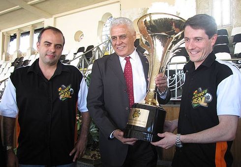 Logo depois, o presidente levantou a taça, que foi entregue pelos responsáveis pelo site, Rodrigo Capela e Daniel Freire. Dinamite elogiou o projeto e garantiu que a taça será guardada com carinho.