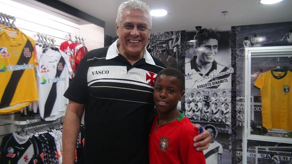 Quem também foi muito assediado pelos vascaínos foi Rodrigo Dinamite, atacante dos juniores. Já de passagem pelo shopping, o meia Robinho do mirim do Vasco, aproveitou para visitar o novo espaço e posar para uma foto com Roberto Dinamite, que ainda deu dicas para o prata da casa.
