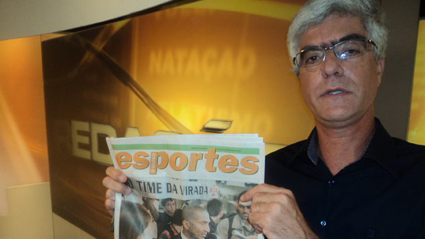 Toninho Nascimento com o caderno de esportes de "O Globo"