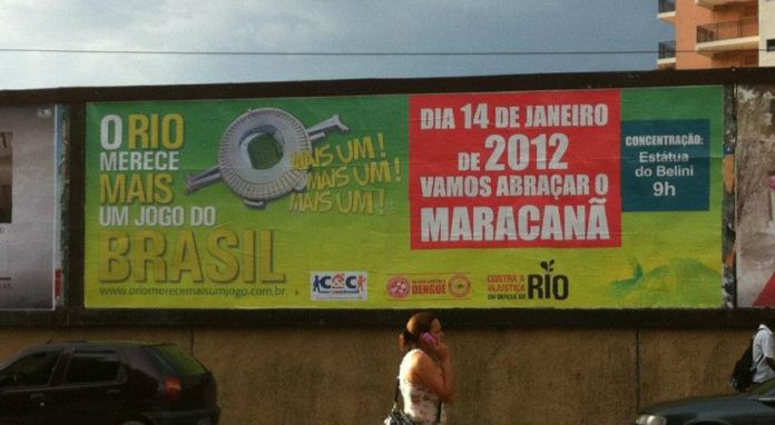 Porém, o movimento tem atraído a atenção de poucas pessoas: apenas 45 internautas “curtiram” a página da campanha no Facebook até a tarde deste sábado. O grupo pretende aumentar o número de simpatizantes até o dia 14, quando organizará um “abraço coletivo” ao Maracanã. Alguns cartazes estão espalhados pela cidade convocando os cariocas: