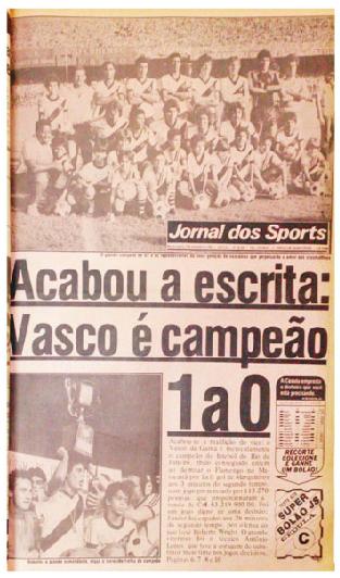 Poucos acreditavam no Vasco. Era só verificar o número de fotógrafos e repórteres atrás dos gols. No de Acácio, 42; no de Raul, 19. O Flamengo tentava o bi e a reabilitação da desclassificação da Libertadores. Mandara até confeccionar as faixas. Na Gávea, só se falava que o Flamengo era o maior na hora da decisão. Só o Vasco acreditava em si mesmo. E os seus jogadores, verdadeiros heróis, foram participantes de uma linda vitória. O Jornal dos Sports editou matéria no dia 6 de dezembro de 1982.