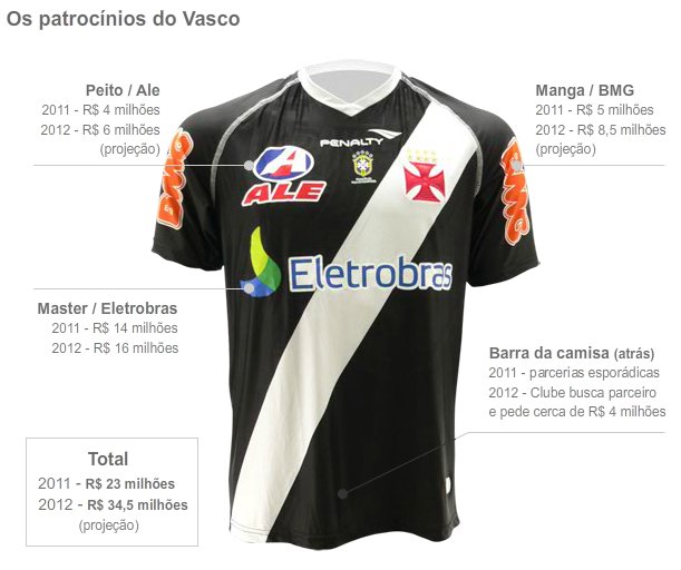 A negociação reflete bem o que o Vasco espera para esta temporada em termos de arrecadação com patrocínios. O objetivo da diretoria é ter um aumento de 50% na receita em relação a 2011. Somando-se todas as cotas de exposição no uniforme, o clube recebeu cerca de R$ 23 milhões no ano passado. A expectativa é chegar a R$ 34,5 milhões.
