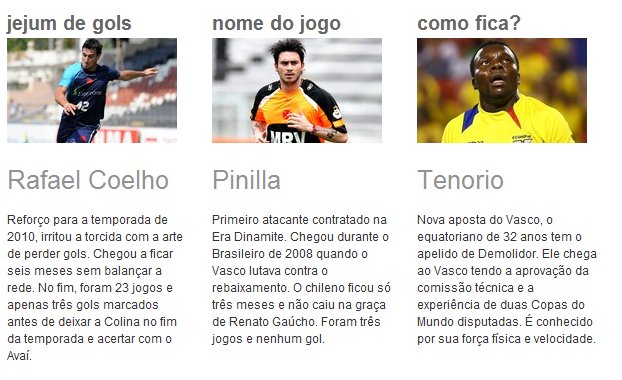 Maior goleador da história do clube, com 702 gols, Roberto Dinamite é sinônimo de Vasco. O status atingido pelo hoje presidente pelo dom de balançar a rede contrasta com a dificuldade de o clube, em sua gestão, ter dificuldades para encontrar um centroavante capaz de satisfazer toda a torcida. Com apresentação marcada para este sábado, o equatoriano Carlos Tenorio é mais uma tentativa de encontrar um jogador para esta posição que agrade todo o público cruz-maltino.