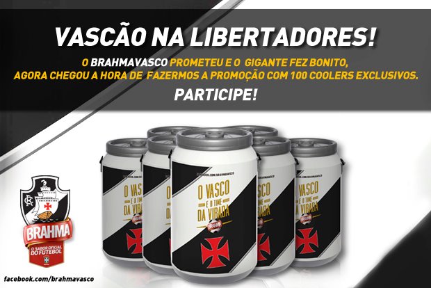 O BrahmaVasco prometeu uma promoção caso o Vascão se classificasse para a Libertadores e chegou a hora! Participe e concorra a um Cooler da Brahma com a cara do Vascão!