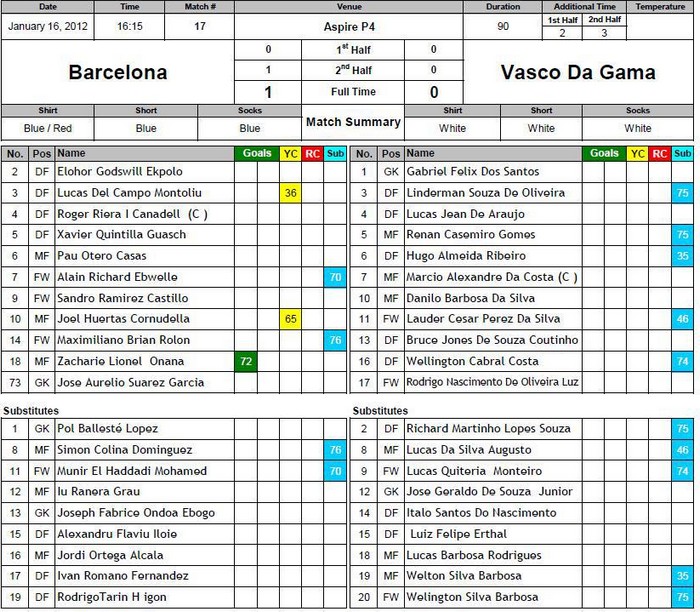 Em jogo disputado na manhã desta 2ª-feira (16/01) no Catar, o time juvenil do Vasco foi derrotado por 1 a 0 pelo Barcelona-ESP (que disputou o torneio com sua equipe B) e terminou a Al Kass U17 Cup na 6ª colocação. A decisão será entre Paris Saint-Germain-FRA e Juventus-ITA, na próxima 3ª-feira (17/01).