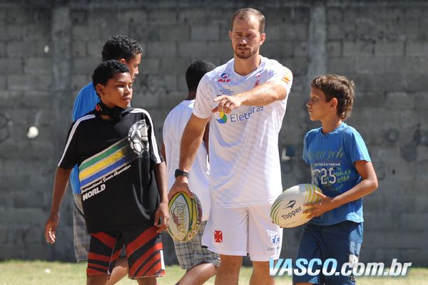 "Iniciamos o projeto em abril de 2011. Na aula inaugural, tivemos mais de 80 crianças participando e alguns colégios da região. Nossa divulgação é feita juntamente com o apoio dos colégios. Apresentamos o rugby aos alunos através de uma palestra seguida de uma aula prática. A partir daí, encaminhamos os alunos ao departamento do Vasco, para ser feita a inscrição. O projeto é gratuito e a criança ainda recebe de graça o uniforme de treino. Hoje estamos com o Núcleo de São Cristovão, que atende a 30 crianças da região. Já fechamos um convenio com o clube da ABANERJ, em Jacarepaguá, onde devemos iniciar os treinos no retorno das aulas escolares. Temos a previsão de mais dois pólos em 2012. São Gonçalo e Santa Cruz."