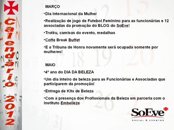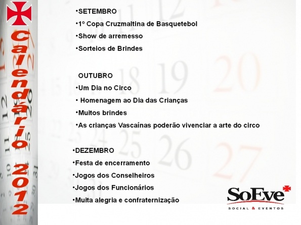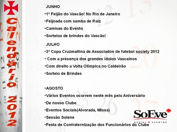 Confira o calendário do departamento social e eventos do Vasco para 2012