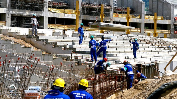 ![]() Novas arquibancadas estão sendo montadas | ![]() Segundo o governo do Rio, etapa foi antecipada em um mês | ![]() Estádio deve ser entregue em aproximadamente um ano |