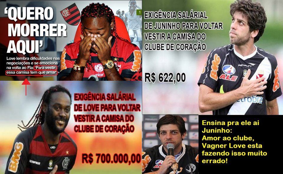 Comparação entre Juninho e Vágner Love vira piada no Facebook