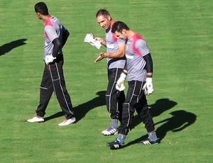 O goleiro Fernando Prass apareceu no campo de São Januário, mas treinou sentado. Ainda se recuperando de um corte no joelho esquerdo que resultou em oito pontos, o goleiro apenas observou o trabalho dos companheiros e conversou demoradamente com o diretor executivo Daniel Freitas.
