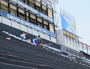 Na manhã desta sexta-feira, enquanto os jogadores treinavam no campo, funcionários do clube retocavam a pintura da arquibancada de São Januário. Em alto e bom som, ironizavam sua própria insatisfação com o atraso do clube no pagamento dos salários.