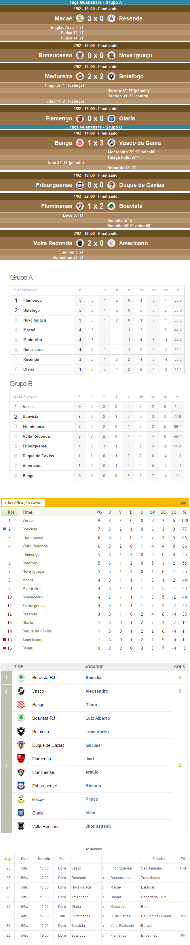 Fonte: Fonte: NETVASCO (texto), Futebol Interior (resultados e autores dos gols), GloboEsporte.com (classificação), Lancenet (classificação geral), UOL (artilharia), Site da FFERJ (próxima rodada)