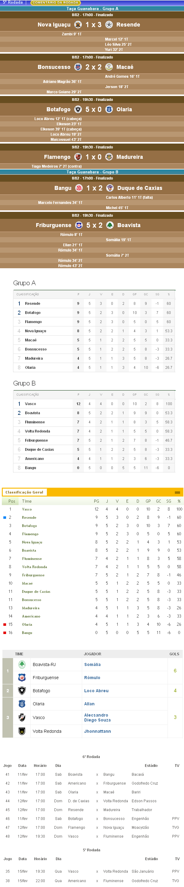 Mesmo sem ter entrado em campo pela 5ª rodada da 1ª fase da Taça Guanabara (1º turno do Campeonato Estadual), o Vasco segue na 1ª colocação do Grupo B e 4 pontos à frente do vice-líder Boavista.