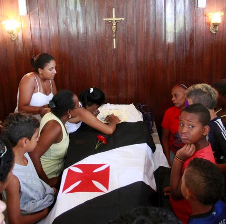 O jovem Wendel Junio Venâncio da Silva, de 14 anos, que morreu ontem no campo do centro de treinamento do Vasco, em Itaguaí, após passar mal, está sendo velado na capela 1 do cemitério municipal de São João Nepomuceno, sua cidade natal em Minas Gerais. O garoto está coberto por uma bandeia do Vasco e com uma cora de flores em volta do rosto.