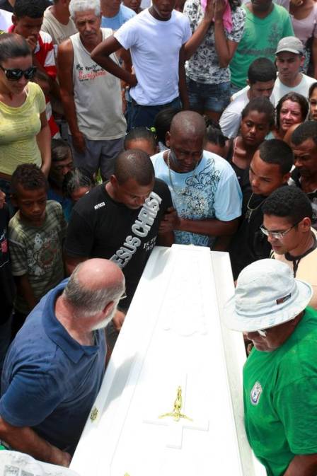 Sob aplausos, muito choro e uma tristeza que tomou conta de familiares e amigos de Wendel Junio Venâncio da Silva, de 14 anos, que foi enterrado na tarde desta sexta-feira, no cemitério municipal São João Nepomuceno, sua cidade natal, em Minas Gerais. A mãe do menino, Rita de Cassia da Silva, não conseguiu subir e ver o caixão ser colocado la lápide.