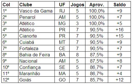 O levantamento abaixo, feito pela NETVASCO, mostra somente os clubes com mais de 85% de aproveitamento nos Estaduais de 1ª divisão do Brasil que já passaram da 2ª rodada. Confira: