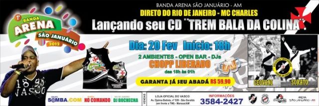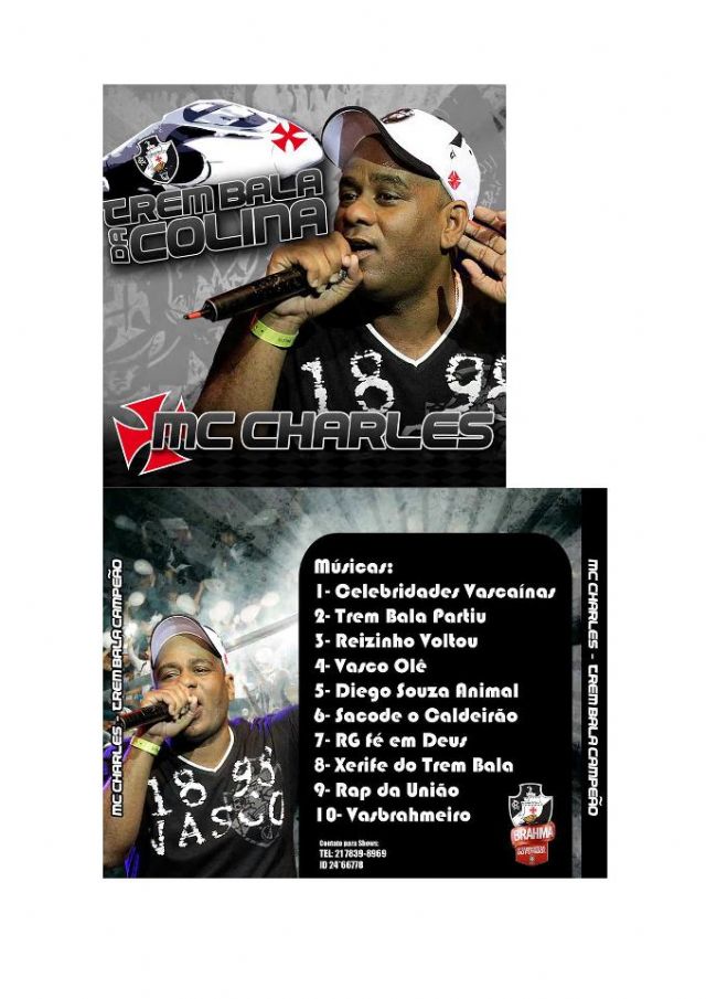 No próximo dia 20 de fevereiro, o cantor vascaíno 'MC Charles' lançará o seu primeiro CD em Manaus. Com o nome de 'Trem-Bala da Colina', o disco conta com canções que fazem sucesso entre os torcedores cruzmaltinos, como as feitas em homenagem ao meio-campo Diego Souza e ao zagueiro Dedé.