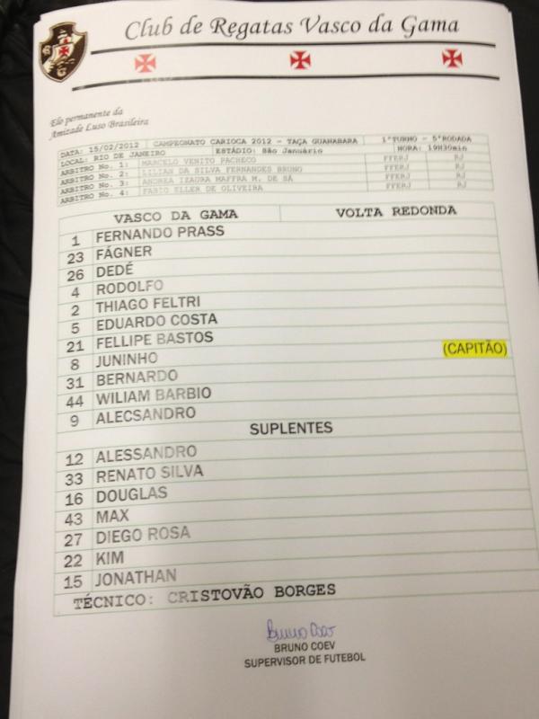 Fonte: Twitter da assessora de imprensa do Vasco Patrícia Gregório