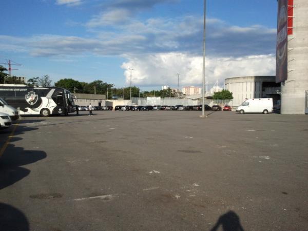 Pátio do Engenhão quase vazio, mas com ônibus de Vasco e Boavista
