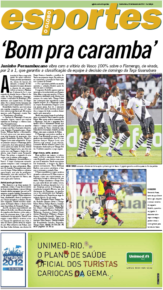 Veja como a imprensa destacou a classificação do Vasco à final da Taça GB