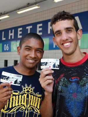 Com filas organizadas e muita tranquilidade, a venda de ingressos para a final da Taça Guanabara, entre Vasco e Fluminense começou no horário marcado no Engenhão, às 10h. Os amigos vascaínos Luiz Paulo, de 19 anos, e Paulo Roberto, de 18, foram os primeiros a comprar ingressos na bilheteria do estádio.