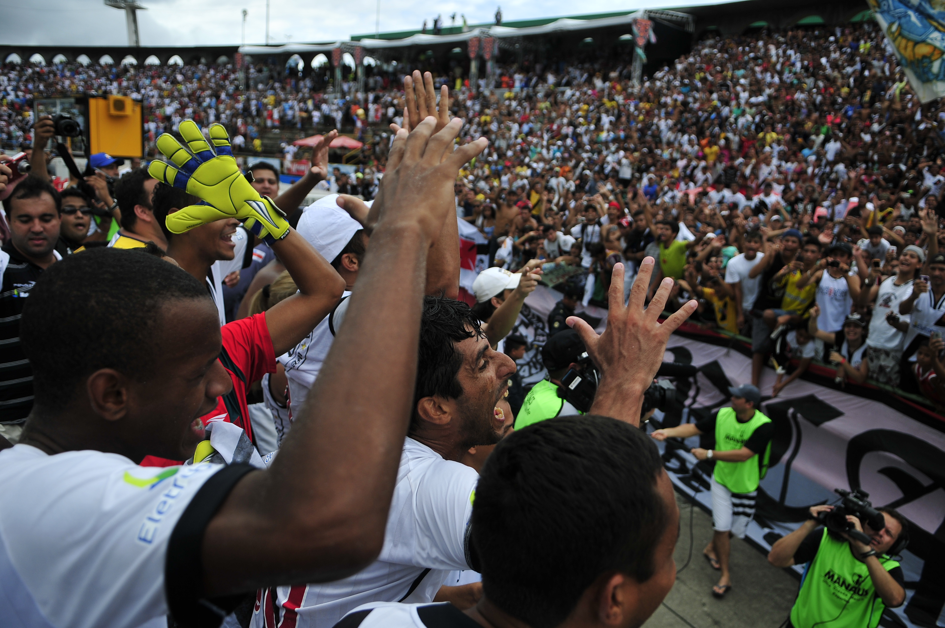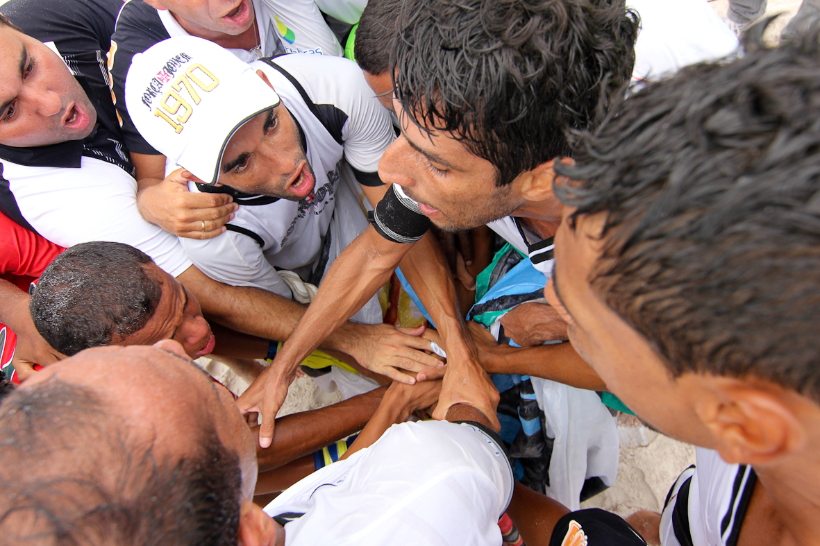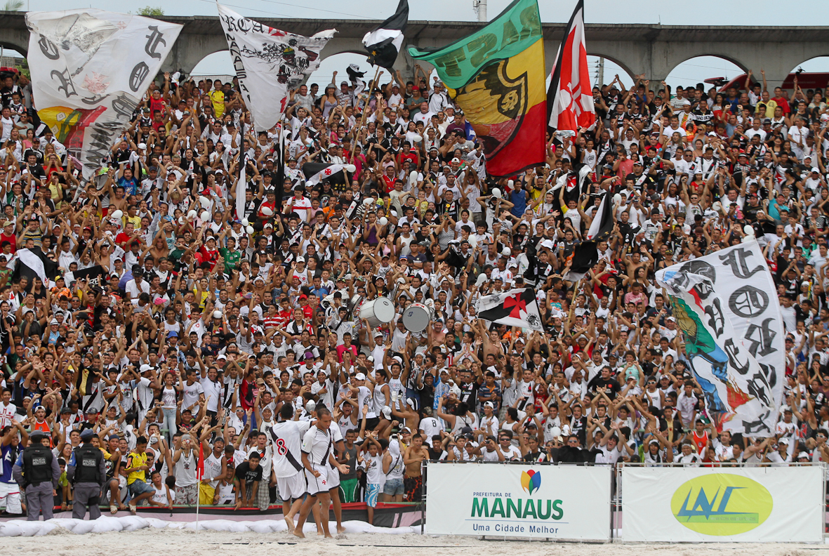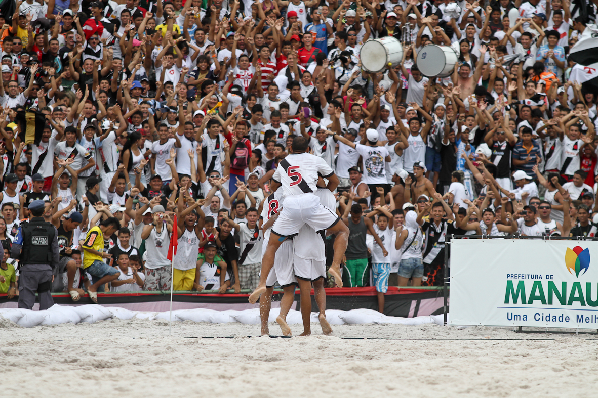 O ‘Trem Bala da Areia’ incendiou Manaus. O Vasco da Gama (RJ) é o campeão da II Copa Brasil 2012. Na decisão do torneio, disputada há pouco, na manhã deste domingo, dia 11, o ‘Gigante da Colina’ venceu o Sampaio Correa por 5 a 2 (gols de Mauricinho (2), Bruno Xavier, Bueno e Rafinha, para os cariocas, Dinei e Daniel, para os nordestinos), e conquistou o título inédito, que se junta aos troféus do I Mundialito (2011) e do Torneio Rio-São Paulo (2010). Delírio da imensa torcida vascaína, que compareceu em excelente número (público total de 18 mil pessoas) e fez a festa nas arquibancadas da arena do Centro Cultural dos Povos da Amazônia (CCPA), o ‘Coliseu do Beach Soccer’. Na disputa pelo terceiro lugar, o Flamengo (RJ) venceu o Cruzeiro (MG) por 3 a 1 (gols de Mosca, Diego e Juninho, para os cariocas, e Nelito, para os mineiros) e completou o pódio da competição. Mauricinho (Vasco da Gama) foi eleito o ‘Melhor Jogador’ do campeonato, dividindo com Diego (Flamengo) o posto de ‘Artilheiro’ (6 gols), e Cesinha (Vasco da Gama) foi eleito o ‘Melhor Goleiro’. O evento ainda arrecadou duas toneladas de alimentos não-perecíveis em prol das vítimas do município de Boca do Acre, atingido pela cheia do Rio Branco. A II Copa Brasil Manaus teve organização da Prefeitura de Manaus, por meio da Secretaria Municipal de Desporto e Lazer (Semdej), Federação Amazonense de Futebol de Areia (FAFA) e LNC Eventos, e apoio da Confederação Brasileira de Beach Soccer (CBBS). Festa portuguesa, com certeza.