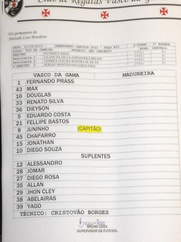 Fonte: Twitter da assessora de imprensa do Vasco Patricia Gregório