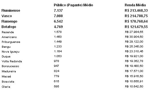 Com o advento das fases finais da Taça Rio – e caso não haja um campeão antecipado, como nas duas últimas temporadas – certamente a média de público será superior a 3 mil pagantes por jogo. A renda também tende a subir: atualmente ela é de aproximadamente R$ 60 mil por partida. Pouco. Muito pouco para um campeonato de tamanha tradição – com clubes e torcidas tão grandes.