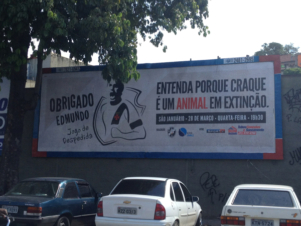 A despedida do atacante Edmundo acontecerá no próximo dia 28 de março no Estádio de São Januário, mas o Vasco já começou a convocar seu torcedor para essa grande festa. Para isso, o clube colocou um anúcio do jogo amistoso contra o Barcelona de Equador num outdoor localizado em frente à Colina histórica.