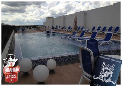 O Hotel Bourbon Conmebol oferece de tudo e a sua arquitetura é muito diferente. Confira só as fotos aí e veja como é o lugar em que os vascaínos estão hospedados. É isso aí galera, o Passaporte Brahmeiro do Vasco está levando todas as informações em terras paraguaias até você, fiquem ligados, mais tarde tem treino e um vídeo especial para a galera.