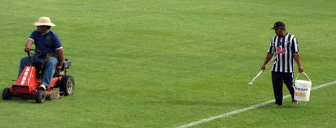 Ainda no fim da tarde desta quarta-feira, funcionários do Libertad (PAR) deram os últimos retoques no campo para a partida contra o Vasco, marcada para às 22h, pela Copa Santander Libertadores. Enquanto um paraguaio reforçava as linhas, outro aparava o gramado. Minutos depois, policiais fizeram uma vistoria em todas as dependências do estádio, até com cães farejadores.