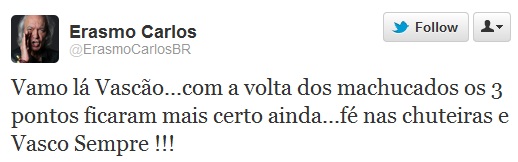 Fonte: Twitter do cantor e compositor Erasmo Carlos