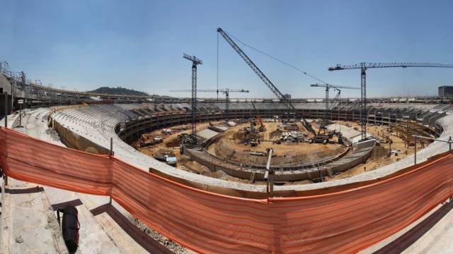 A única coisa em fase de conclusão é a rede de drenagem ao redor do campo e as quatro novas rampas de acesso. As muretas que separam o campo das arquibancadas já estão prontas, assim como o túnel norte, para acesso dos veículos ao campo. Até o final deste mês mais 600 trabalhadores serão contratados para acelerar o processo das obras.