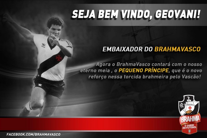 Tem reforço na torcida brahmeira do VASCÃO, galera! O 'Pequeno Príncipe', Geovani, vai ser o Embaixador do BRAHMAVASCO!