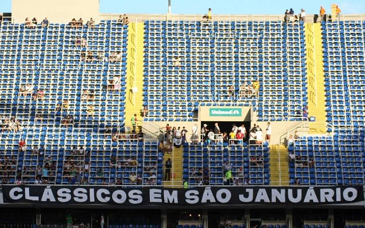 Torcida do Vasco protesta contra a não realização de clássicos no estádio São Januário antes do jogo contra o Botafogo
