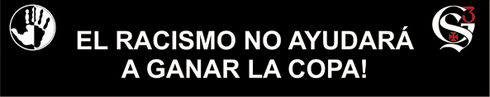 Orgulhosos de sua história, os vascaínos não receberam nada bem os insultos racistas que os zagueiros Dedé e Renato Silva sofreram na partida de ida da fase de grupos da Copa Santander Libertadores, contra o Libertad (PAR), em Assunção. Nesta quarta-feira, às 22h, em São Januário, os torcedores exibirão uma faixa em espanhol direcionada aos torcedores paraguaios. Nela, consta a frase: "El racismo no ayudará a ganar la Copa" (O racismo não ajudará a ganhar a Copa). Veja abaixo o modelo: