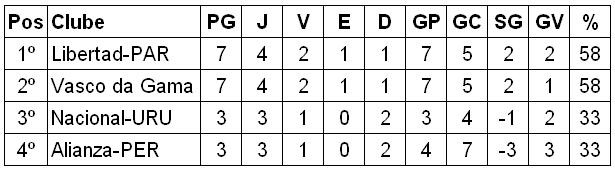 A classificação do Grupo 5 da Copa Libertadores da América fica, portanto, assim: