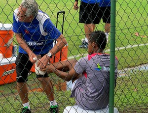 A nota triste do treino ficou por conta de um acidente com o lateral-direito Max. O jogador torceu o tornozelo esquerdo em um exercício e precisou deixar a atividade para colocar gelo. O jogador deve desfalcar a equipe no jogo do fim de semana.